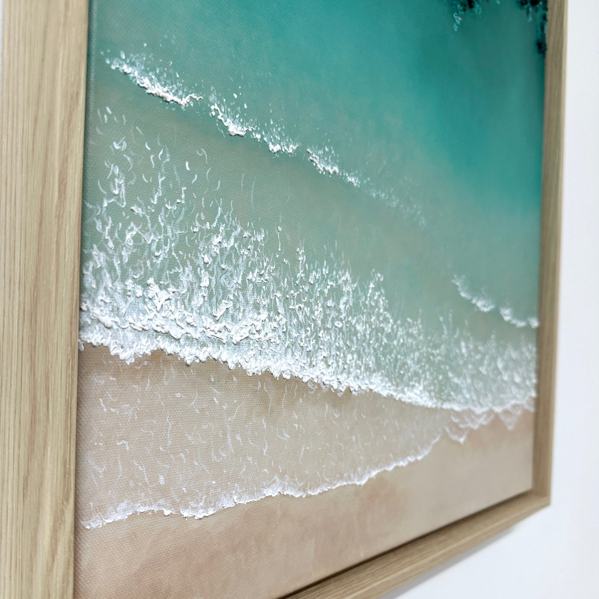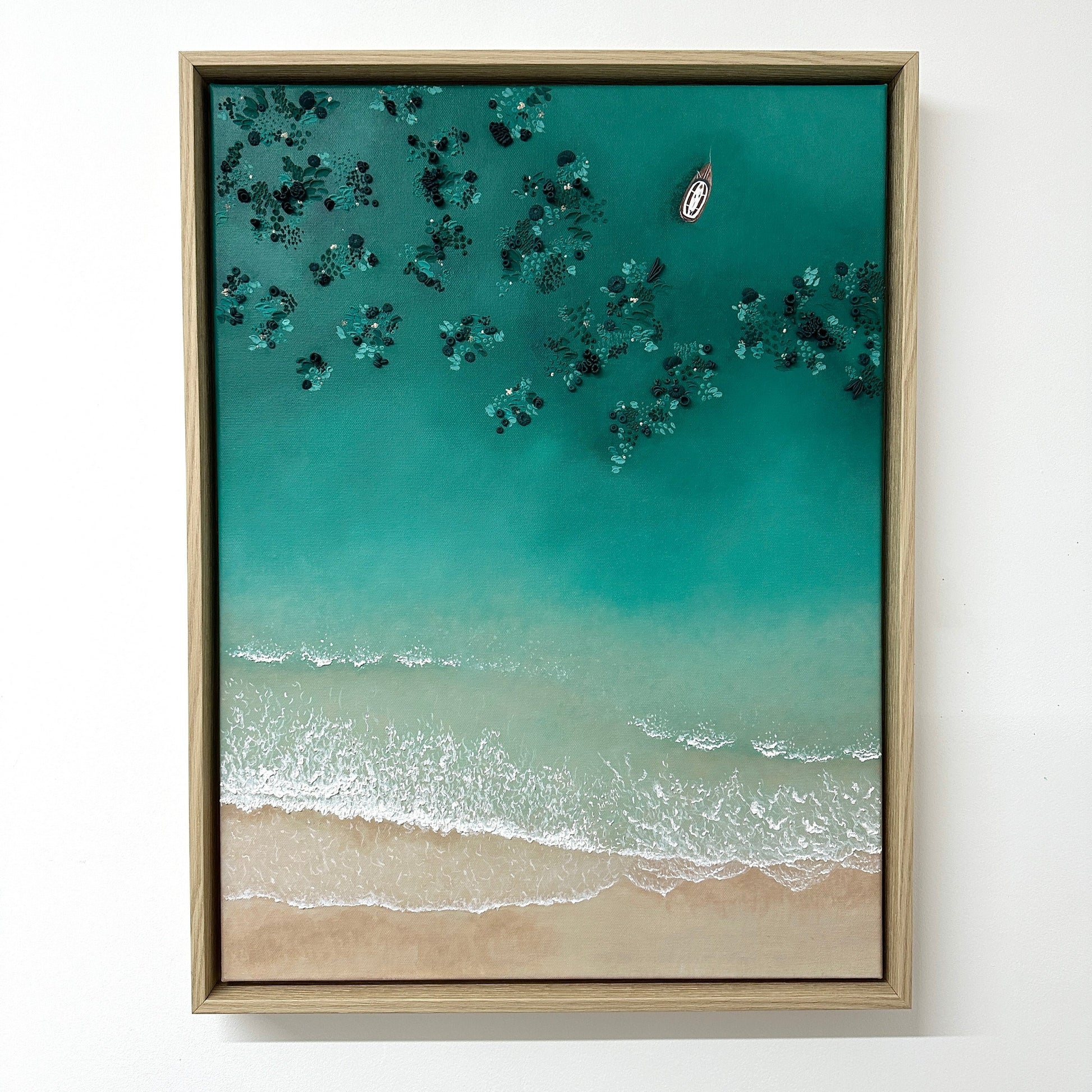 This artwork is inspired by Hawkers Cove, a hidden gem near Padstow, full of rich colours. Using a mix of materials, I’ve created textured 3D coral elements that add depth and dimension to the canvas, making it a unique and tactile piece of art.