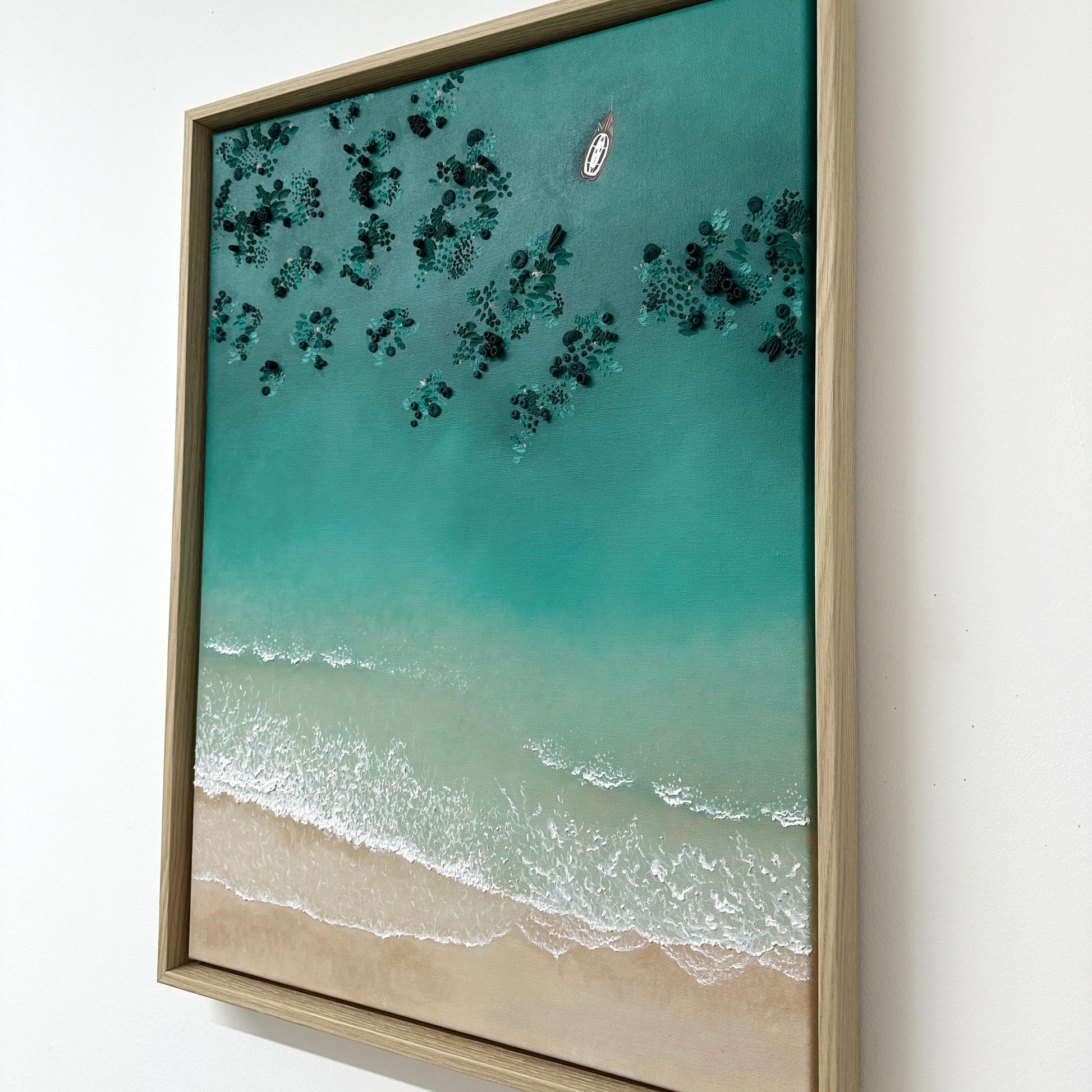 This collection captures the essence of Cornwall’s coastline through aerial perspectives, inspired by drone footage from my recent holiday. Each painting reflects the natural wonders of the ocean from above, with my signature coral reefs woven into the seascapes, bringing an underwater world into the scenery. These pieces blend my love for the sea’s surface and its depths, creating a unique fusion of land, water, and marine life.