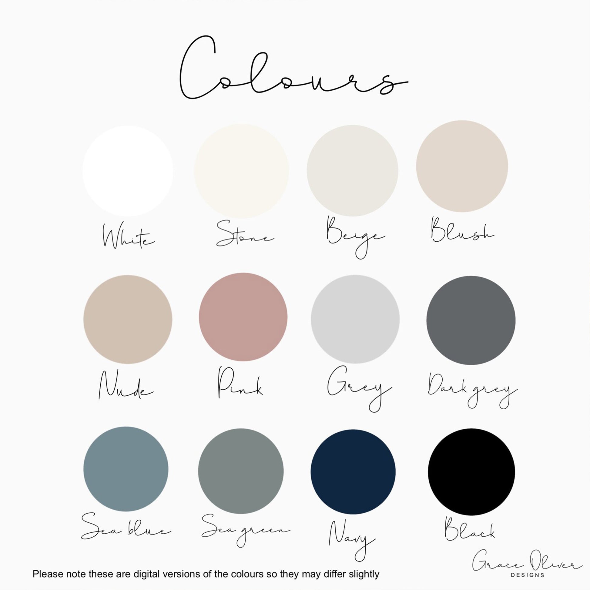 Colours: White, Stone, Beige, Blush, Nude, Pink, Grey, Dark Grey, Sea Blue, Sea green, Navy & Black
