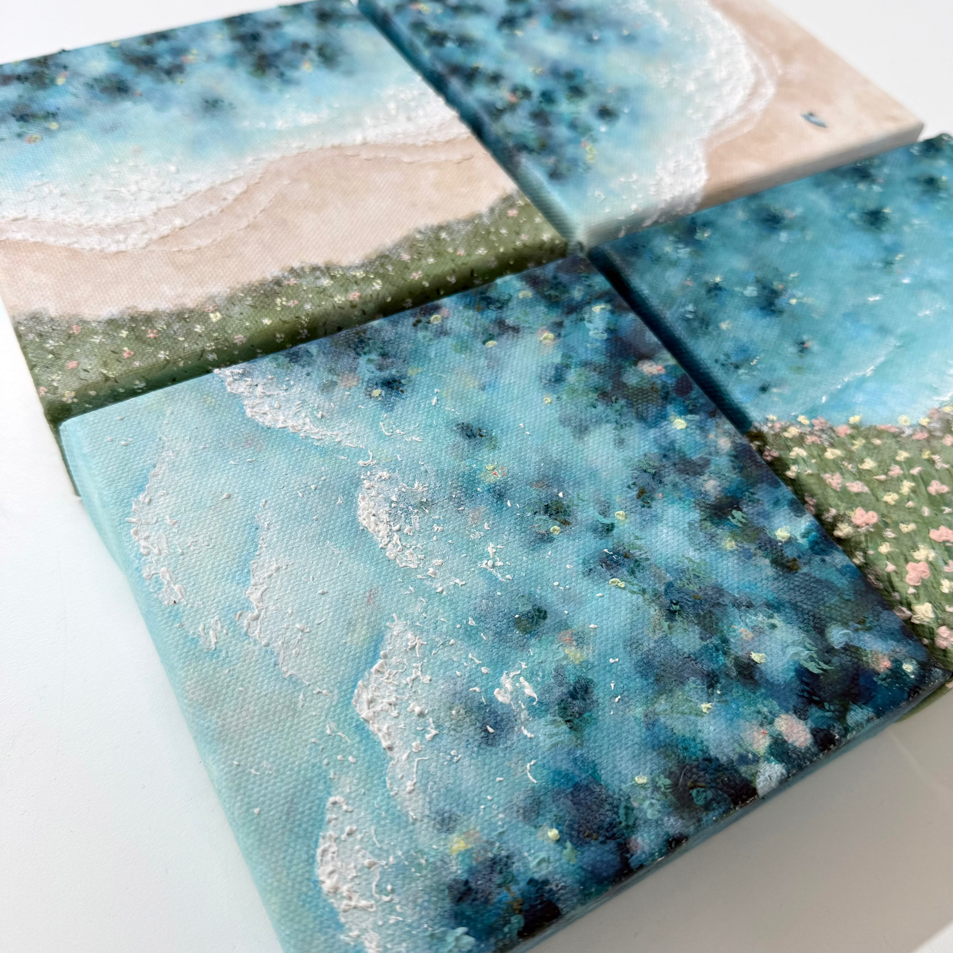 This mini series began as a way to reconnect with creativity after spending time on commissions. I wanted to paint purely for the joy of it, no plans, no reference photos, just creating from memory and imagination. Each piece is inspired by Cornwall, the colours of the coast, and the textures of sand, rock, and sea.