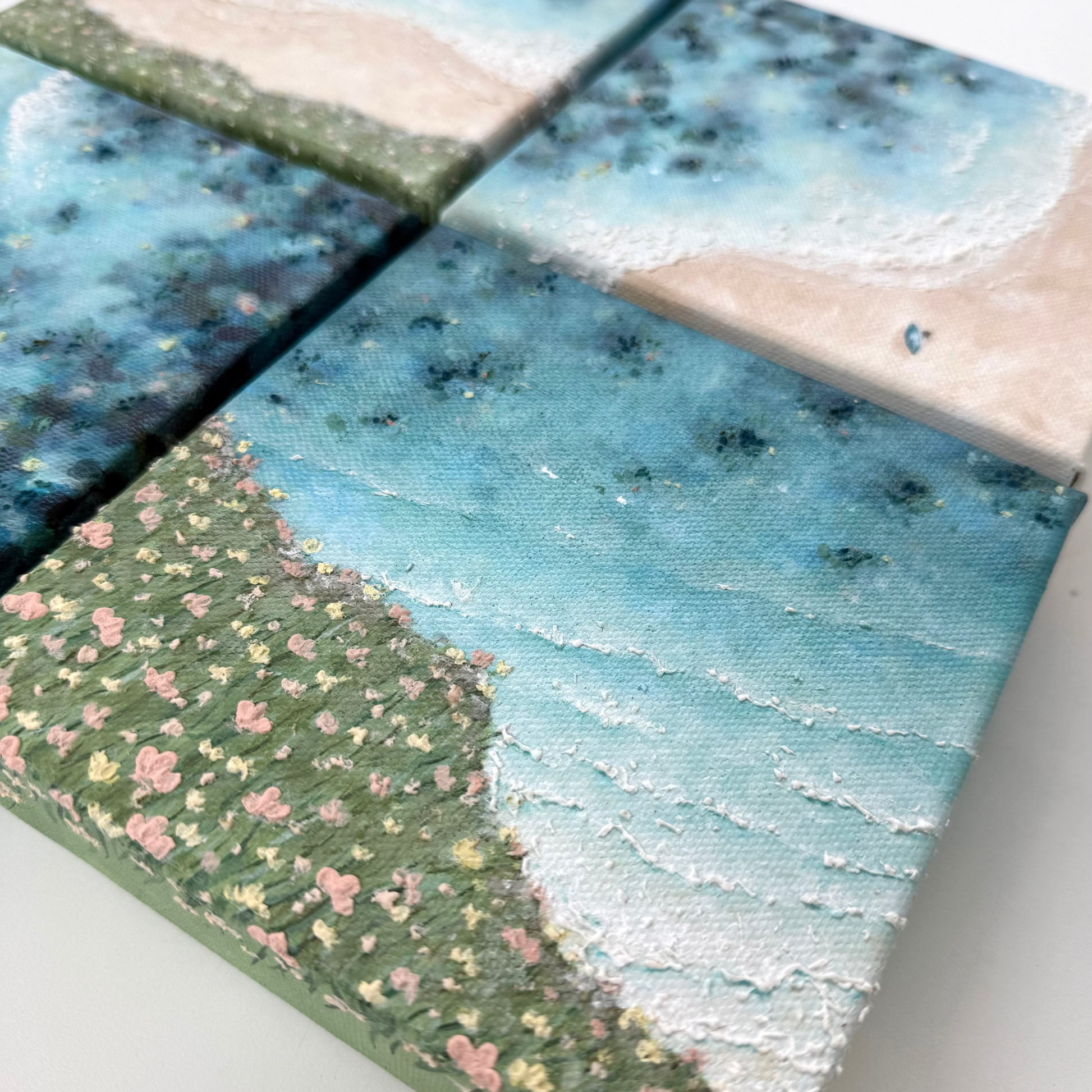 This mini series began as a way to reconnect with creativity after spending time on commissions. I wanted to paint purely for the joy of it, no plans, no reference photos, just creating from memory and imagination. Each piece is inspired by Cornwall, the colours of the coast, and the textures of sand, rock, and sea.