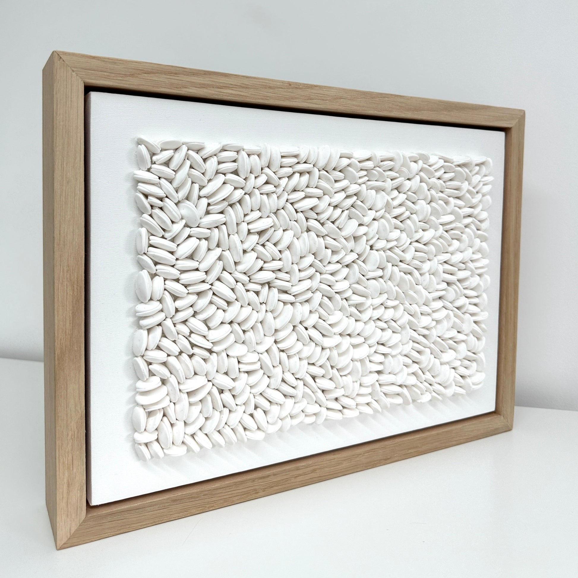 Created with high quality materials, and framed in a floating style light oak frame, handmade by a local business.